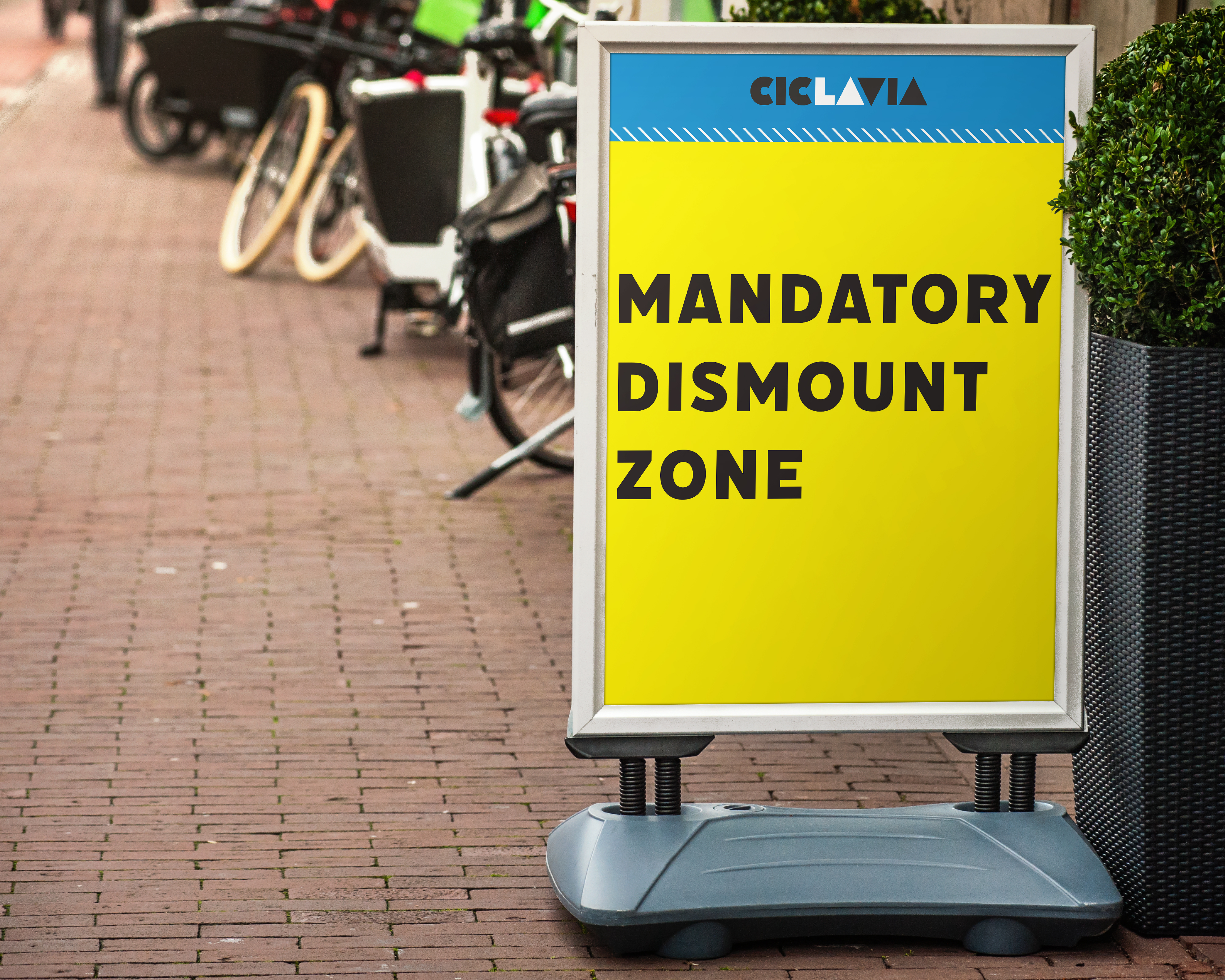 CicLAvia is a recurring event that occurs throughout select locations in the county of Los Angeles. CicLAvia restricts several miles of roads soley to foot and non-motorized traffic. As an outdoor road event, CicLAvia relies on their blue signage and branding to not only control their identity, but the flow of people on the roads.